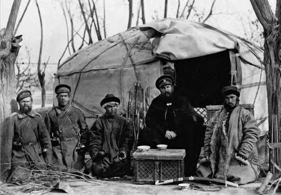 Bronisław Grąbczewski was accompanied by twelve Cossacks and local guides during his travels to Hunza. The Russian Consulate in Kashgar was their place for recreation after strenuous travels, for receiving further instructions and permissions. The photograph of the expedition’s leader with some of his companions was taken in front of their yurt in the consulate’s premises in 1888. The photograph